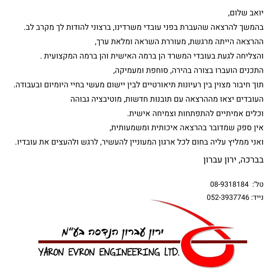 מציע לארגונים הרבה יותר מהרצאה מעוררת השראה.